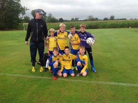 foto: bovenaan van links naar rechts: trainer Bart, gelegenheidsspeelster, Senne, Kylian en Lars L.,